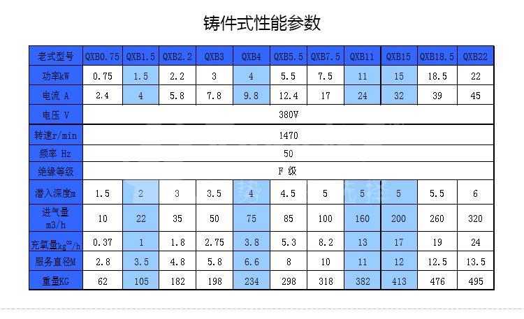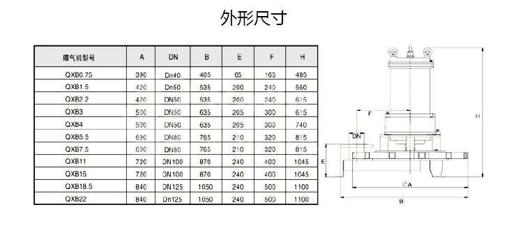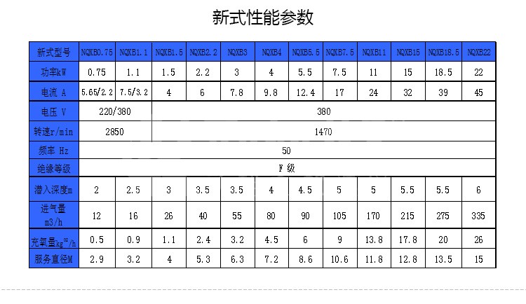 QXB型離心式潛水曝氣機(jī)用于污水處理廠曝氣池、曝氣沉砂池,對污水污泥的混合液進(jìn)行充氧及混合,以及對污水進(jìn)行生化處理或養(yǎng)殖塘增氧。
