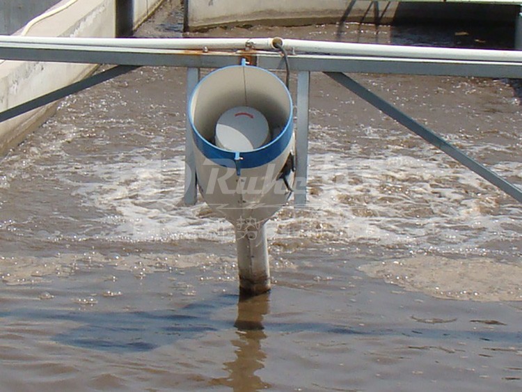 設(shè)備運(yùn)行時,旋轉(zhuǎn)的葉輪在它的周圍區(qū)域形成了一個較強(qiáng)的負(fù)壓區(qū),從而將空氣吸入,吸入的空氣被高速成旋轉(zhuǎn)的液體強(qiáng)烈剪切、粉碎、乳化,氣泡直徑迅速減小,促使氧分子從氣相迅速、充分地擴(kuò)散到液相中去,實現(xiàn)較佳水氣合成,同時水、氣在動力推動下向前推進(jìn),使水、氣進(jìn)一步熔解,達(dá)到曝氣和推流的目的。