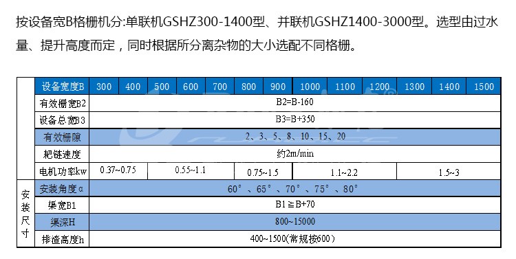 GSHZ型回轉(zhuǎn)式格柵除污機(又稱“固液分離器”),廣泛應(yīng)用于城市污水處理廠、自來水廠、泵站、電廠進水口,自動攔截并清除水中的漂浮物,保證下道工序的正常運行;也可用作紡織、印染、屠宰、制革、造紙、制糖、釀酒、食品加工中的固液分離