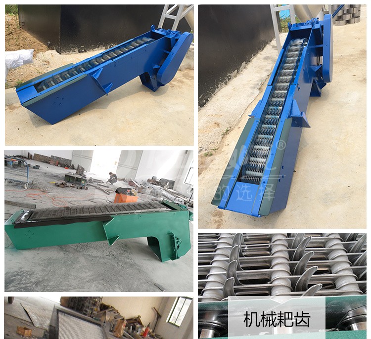 該設(shè)備是由ABS工程塑料、尼龍或不銹鋼制成的特殊形耙齒,按一定的排列次序裝在耙齒軸上形成封閉式耙齒鏈,其下部裝在進水渠水中。當傳動系統(tǒng)帶動鏈輪作勻速定向旋轉(zhuǎn)時,整個耙齒鏈便自上而下運動,并攜帶固體雜物從液體中分離出來,流體通過耙齒間隙流出去,整個工作狀態(tài)連續(xù)進行。