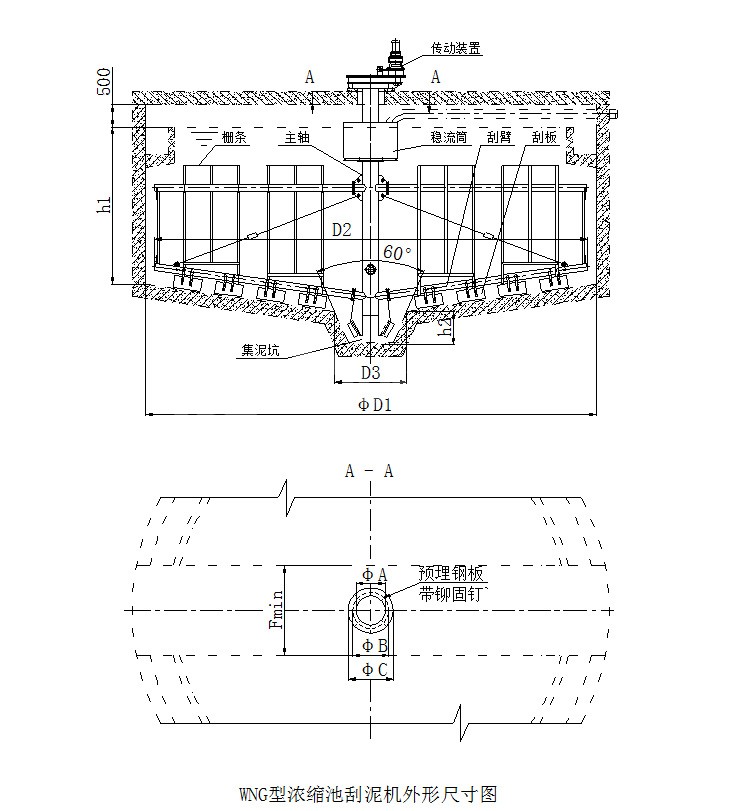 WNG 型濃縮池刮泥機用于污水處理廠重力式污泥濃縮池,將濃縮污泥刮集至池底中心集泥坑,以便進一步作污泥脫水處理。