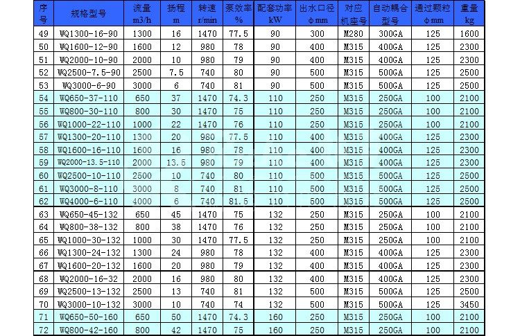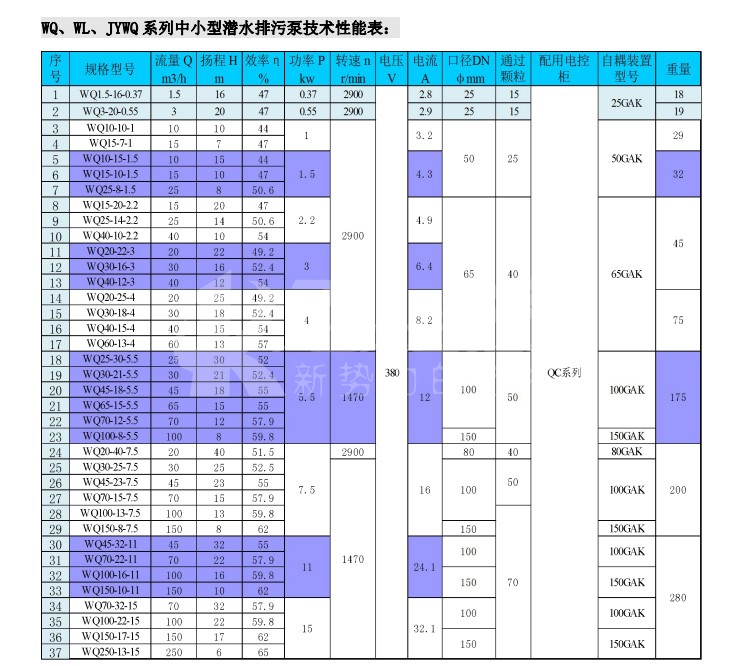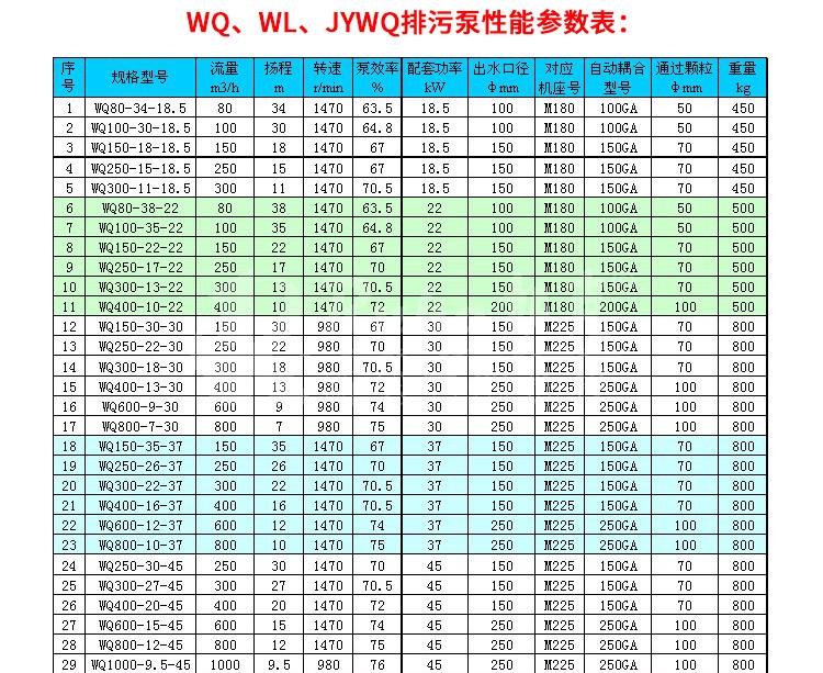 WQ 潛水排污泵,運(yùn)用于廣泛的給排水處理,提升工作效力。 WL 排污泵是在水面上立式安裝,使用干式電機(jī),以便于維護(hù) JYWQ 自動攪勻泵是在 WQ 排污泵進(jìn)水端加了攪勻葉輪,一邊混合一