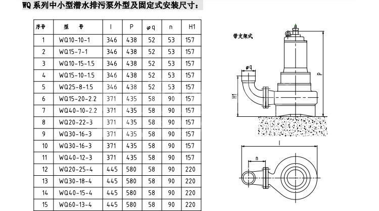WQ 潛水排污泵,運用于廣泛的給排水處理,提升工作效力。 WL 排污泵是在水面上立式安裝,使用干式電機,以便于維護 JYWQ 自動攪勻泵是在 WQ 排污泵進水端加了攪勻葉輪,一邊混合一