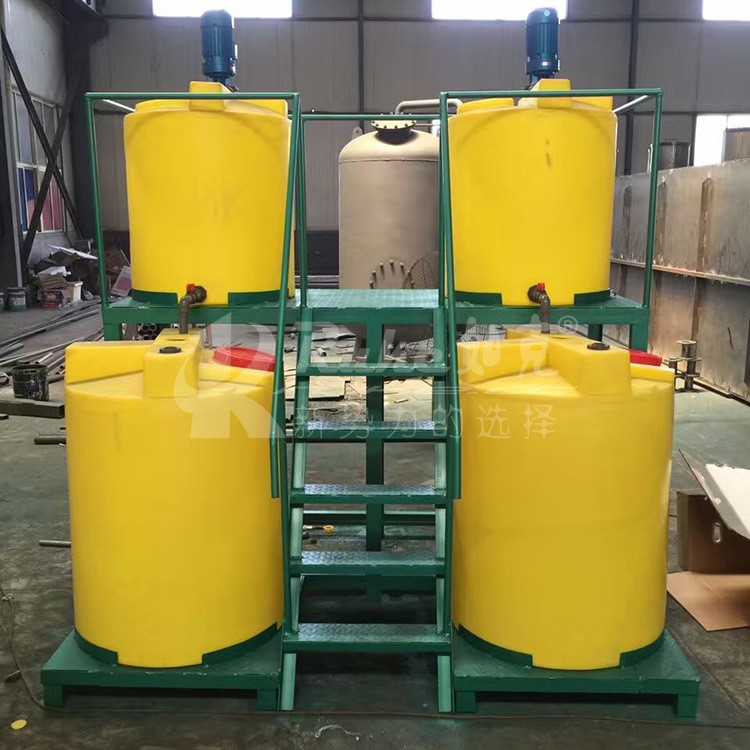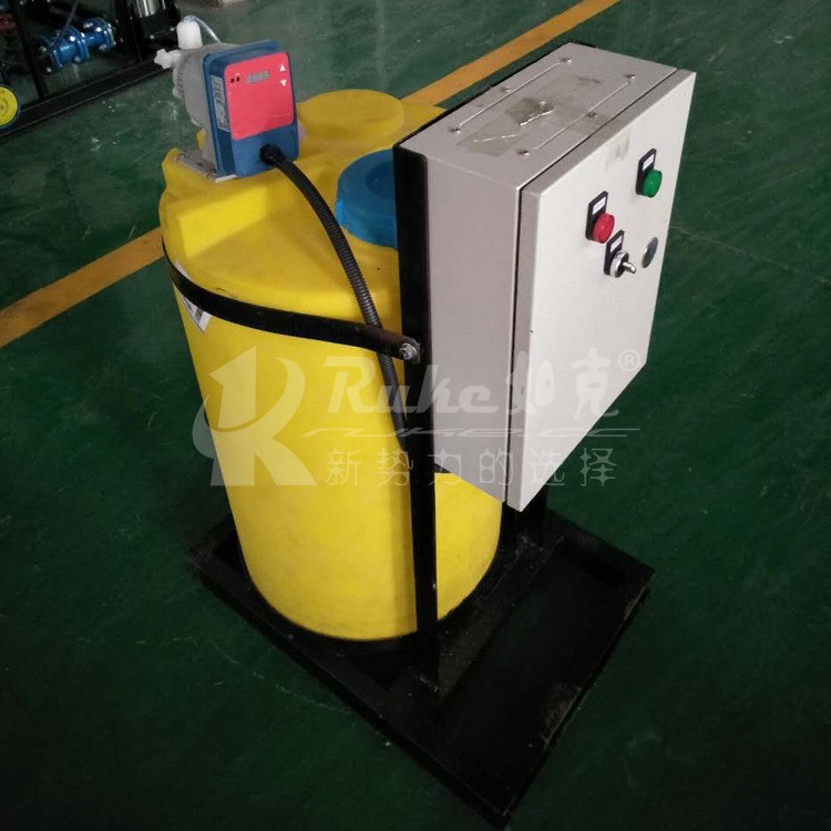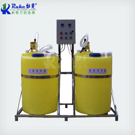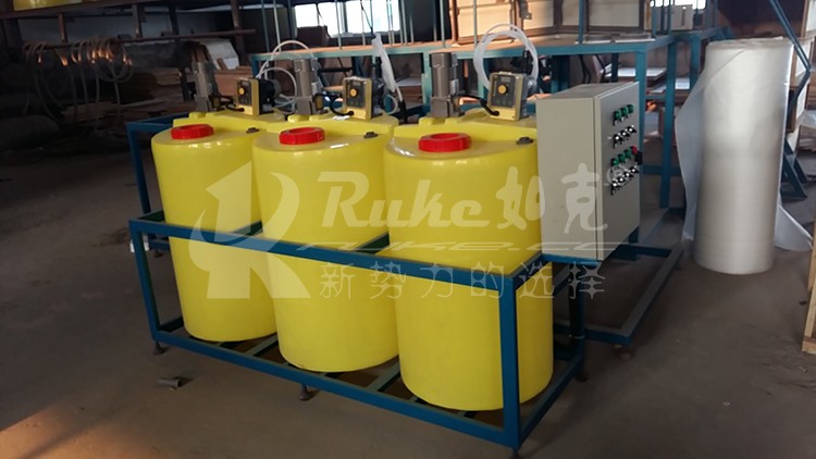 加藥裝置根據(jù)所需藥劑濃度,在溶藥箱內(nèi)配制,經(jīng)攪拌器攪拌均勻后投入加藥箱、用磁力泵(加藥泵)向投藥點(diǎn)或指定的系統(tǒng)中輸送所配制的溶液。成套加藥裝置具有結(jié)構(gòu)緊湊、安全簡單、操作使用簡便等特點(diǎn)。該裝置還可根據(jù)用戶不同工藝流程的要求,進(jìn)行有針對性的設(shè)計(jì)、配置必要的部件,經(jīng)濟(jì)實(shí)用。