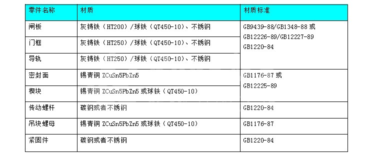 1、本閘門由門框、閘板、導軌、密封條、傳動螺桿、吊塊螺母/吊耳和可調整密封機構等部件組成,其中門框和閘板均由優(yōu)質灰口鑄鐵或球墨鑄鐵制成,導軌左右對稱布置且用不銹鋼螺栓定位銷與門框二側端部連接(對中小口徑的閘門,其導軌可與門框澆注成一體),導軌長度一般為閘門全開啟高度的1/2~1/3,因而整體結構強度高、剛性高、耐磨、耐腐蝕性好、承壓能力大。