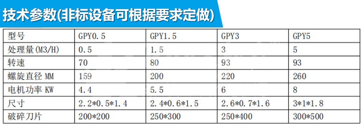 GPY 固液破碎壓榨機(jī)適用于菜市場(chǎng)垃圾,社區(qū)餐余垃圾,餐廚垃圾膠水,水果壓汁。該機(jī)由機(jī)架,傳動(dòng)系統(tǒng),進(jìn)料部分,榨汁部分和壓力部分,壓榨螺旋與主軸一起旋轉(zhuǎn)物料輸送螺旋套在主軸上與壓榨螺旋作反向旋轉(zhuǎn)進(jìn)行壓力擠壓。