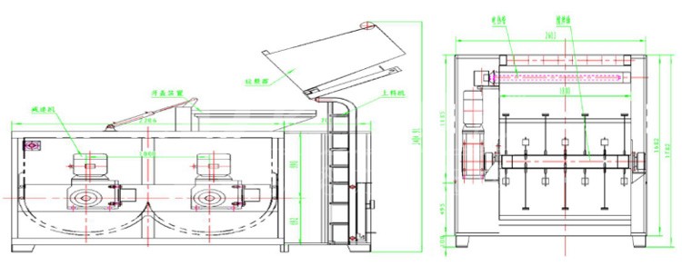 2、結(jié)構(gòu):分為電控箱、攪拌裝置、槽體、加熱裝置、除臭殺菌裝置、上料裝置等所屬部件。與物料接觸部分均采用耐腐蝕不銹鋼,進(jìn)出料口均用耐高溫橡膠作為填充物,密封可靠,無異味泄露。