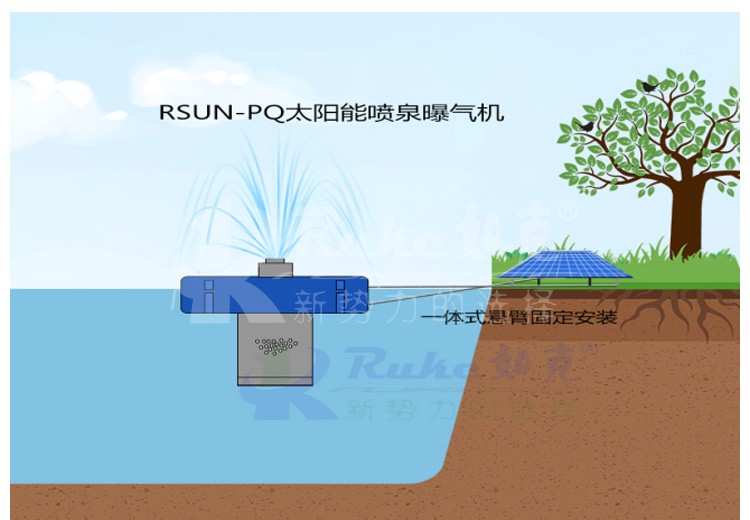太陽能噴涌式增氧機亦稱光伏噴泉泵、光伏提水式曝氣機。可浮于水面并能隨水位升降,是一種由太陽能發(fā)電讓潛水電機帶動水流向上噴涌,通過不同類型噴頭,噴出各種樣式水花,讓水花在空氣中形成增氧效果。